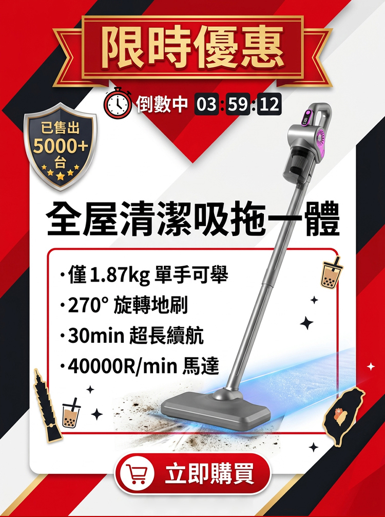 【吸拖一體 全屋清潔】無線手持吸塵器