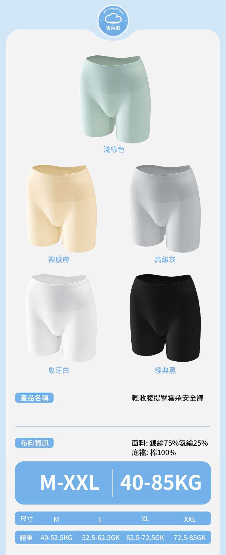 輕收腹提臀雲朵安全褲