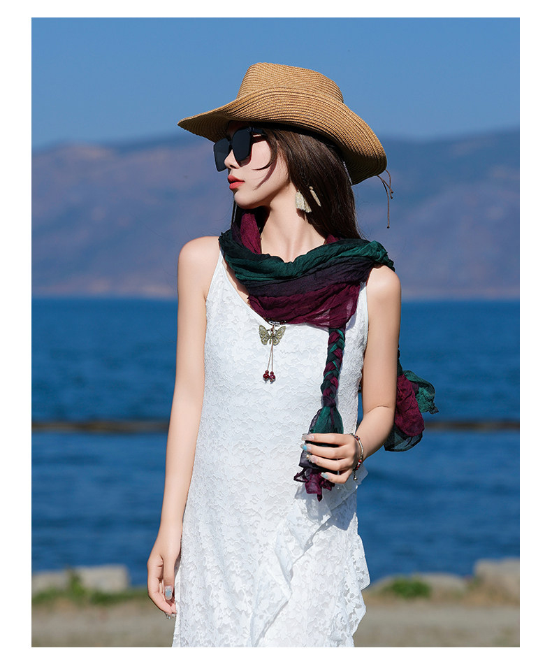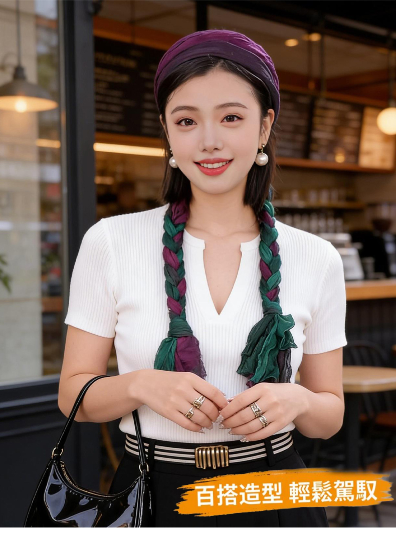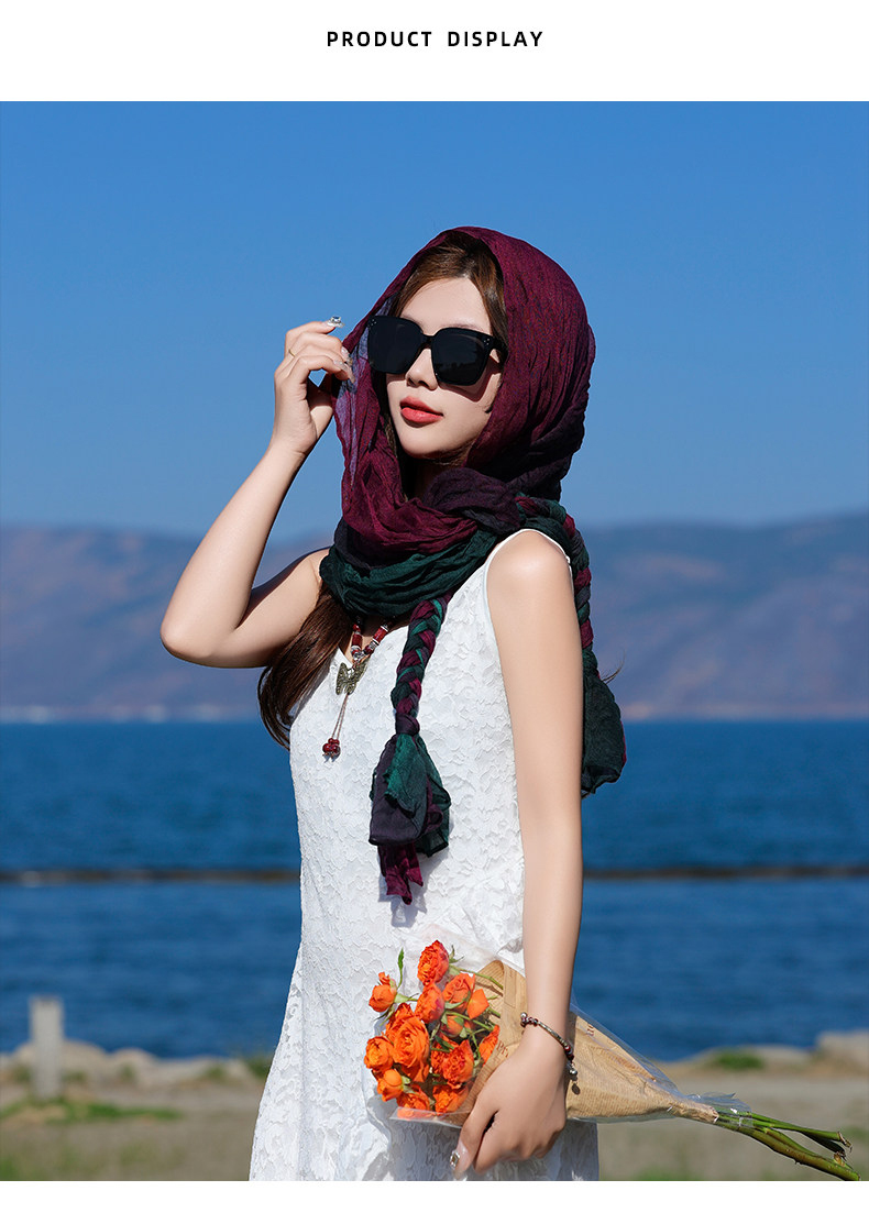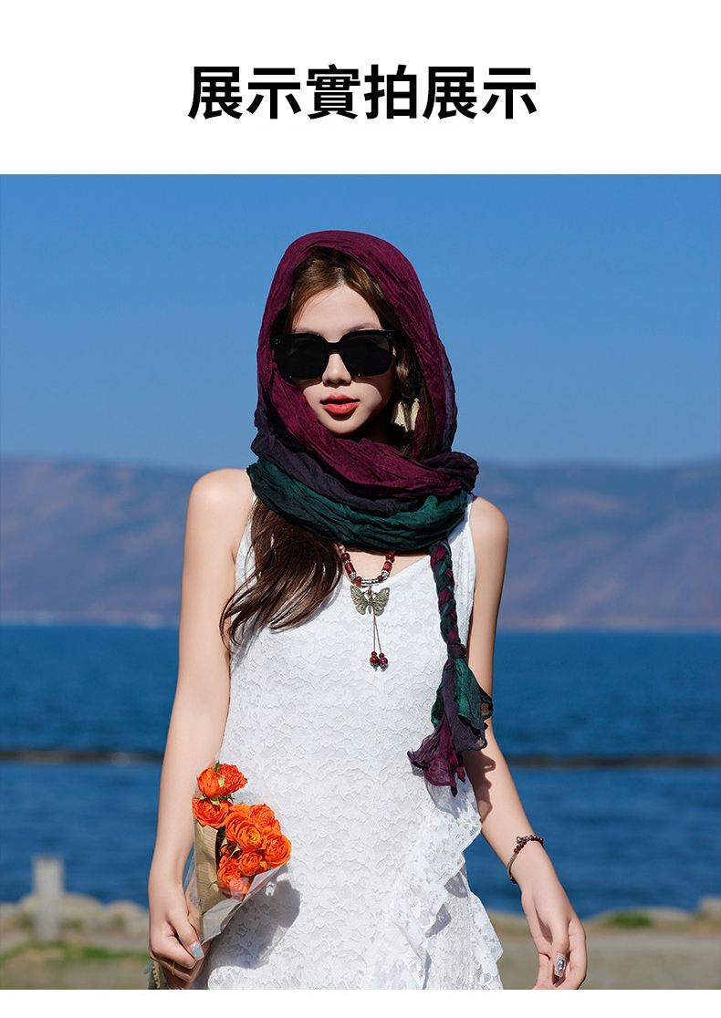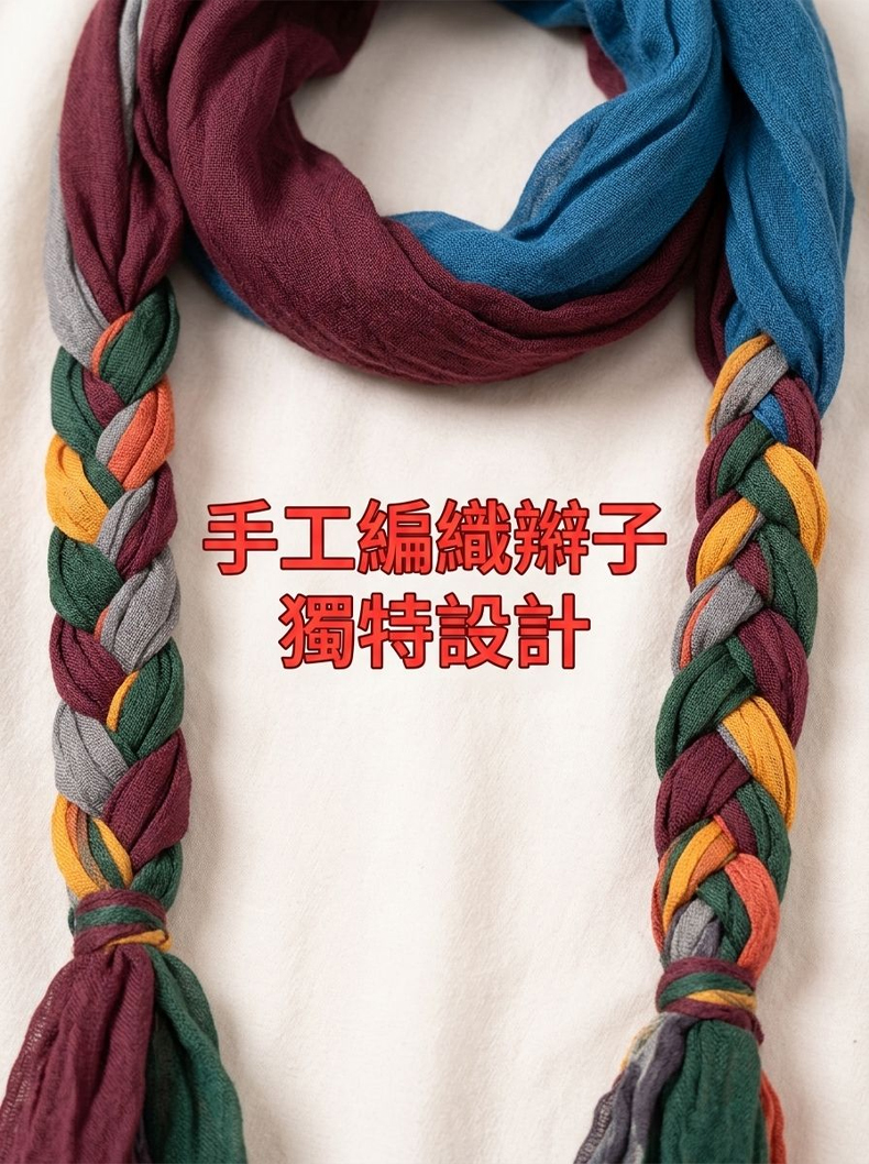 百搭手工編織辮子春夏防曬褶皺包頭巾