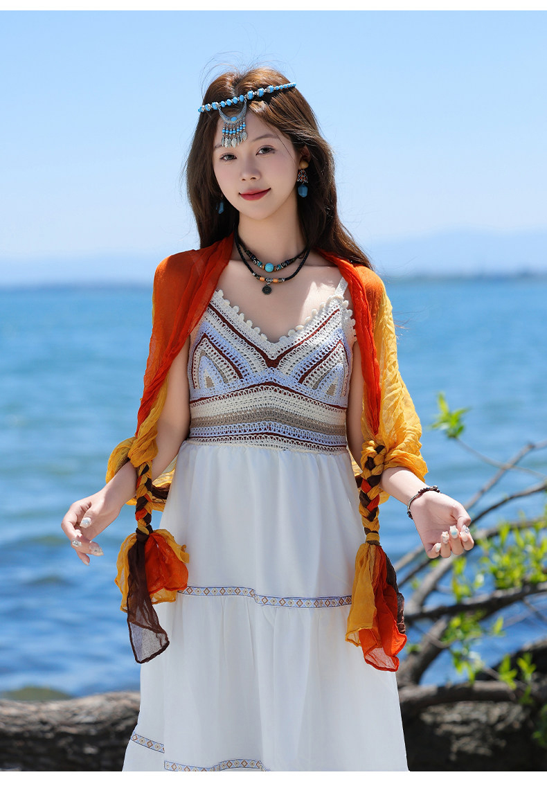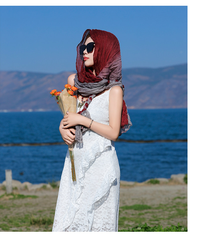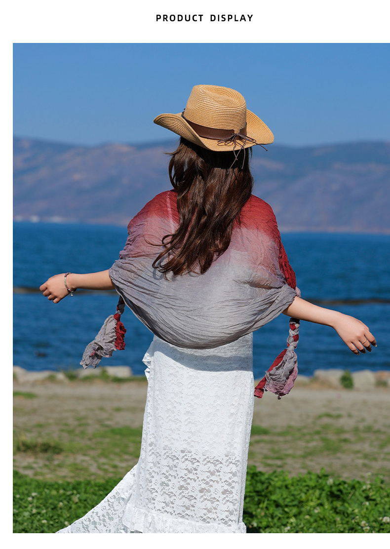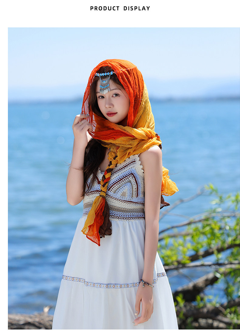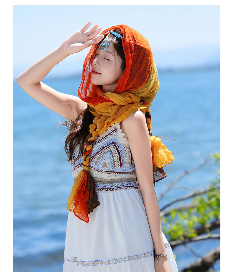 百搭手工編織辮子春夏防曬褶皺包頭巾