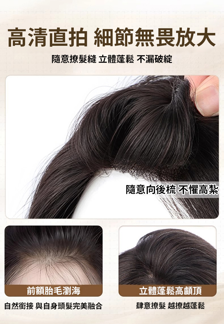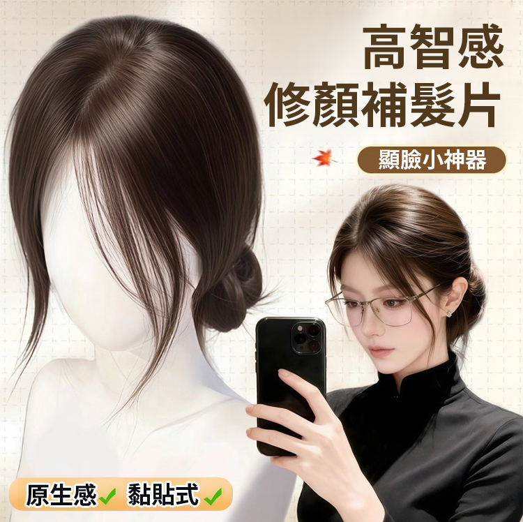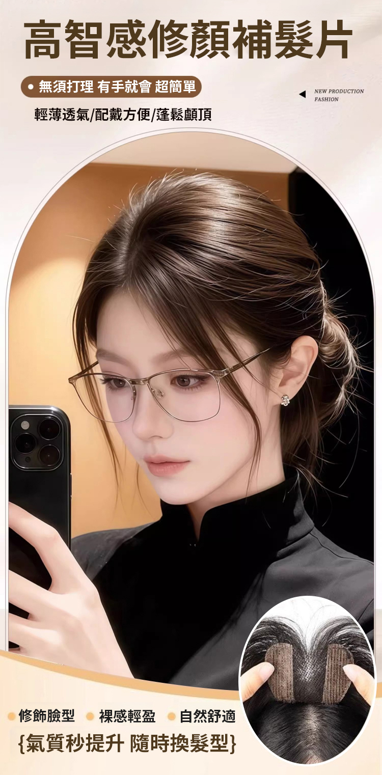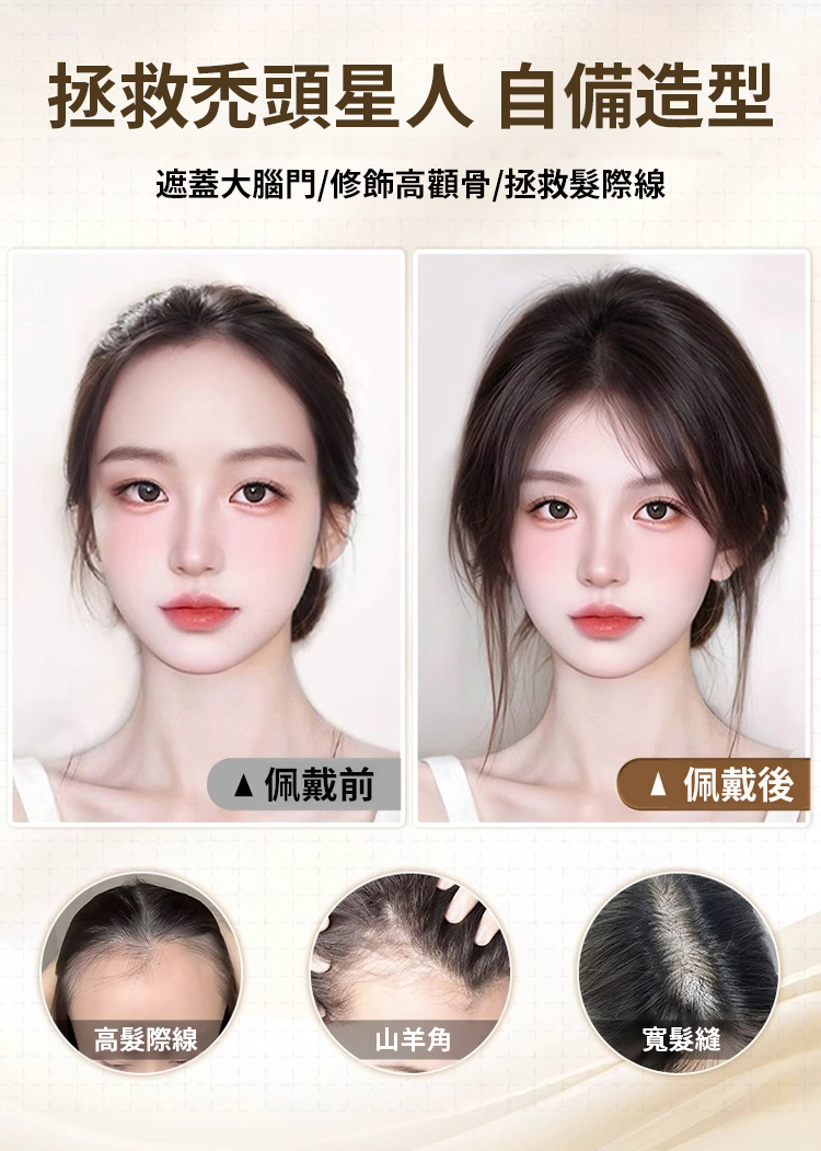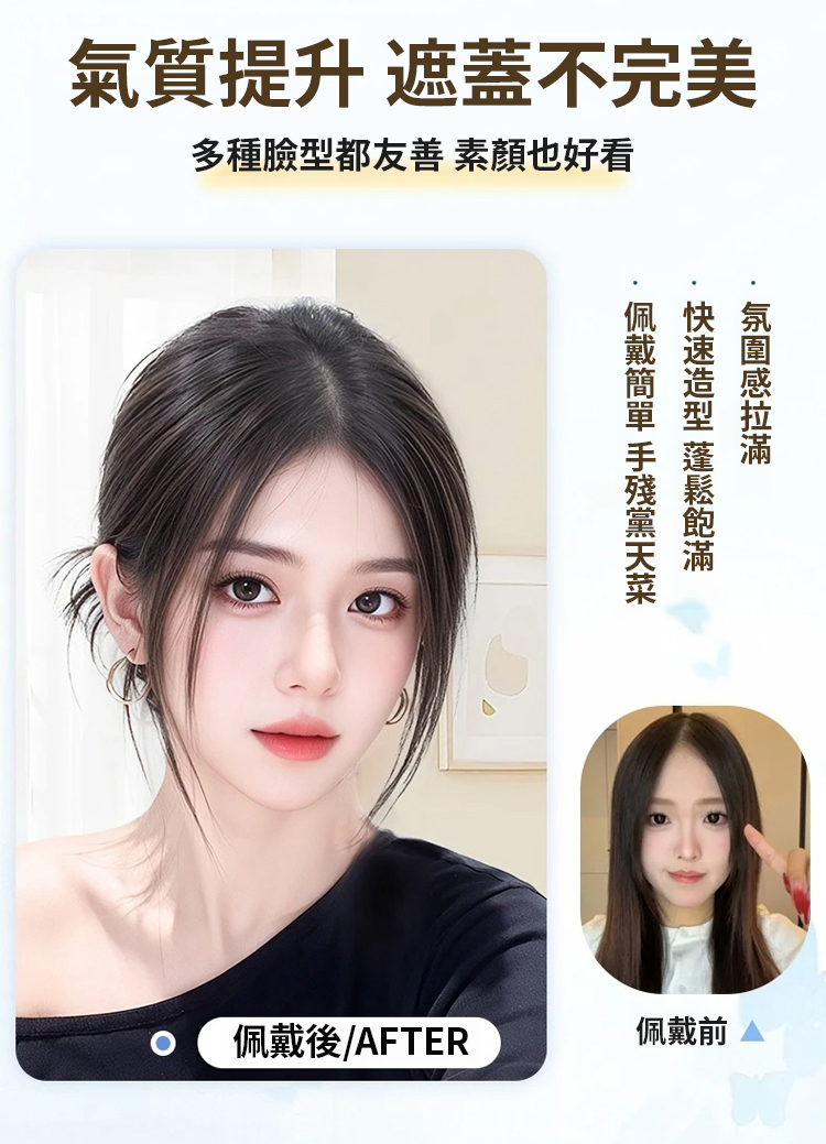 【無需發卡】魔鬼氈瀏海假髮片遮白髮