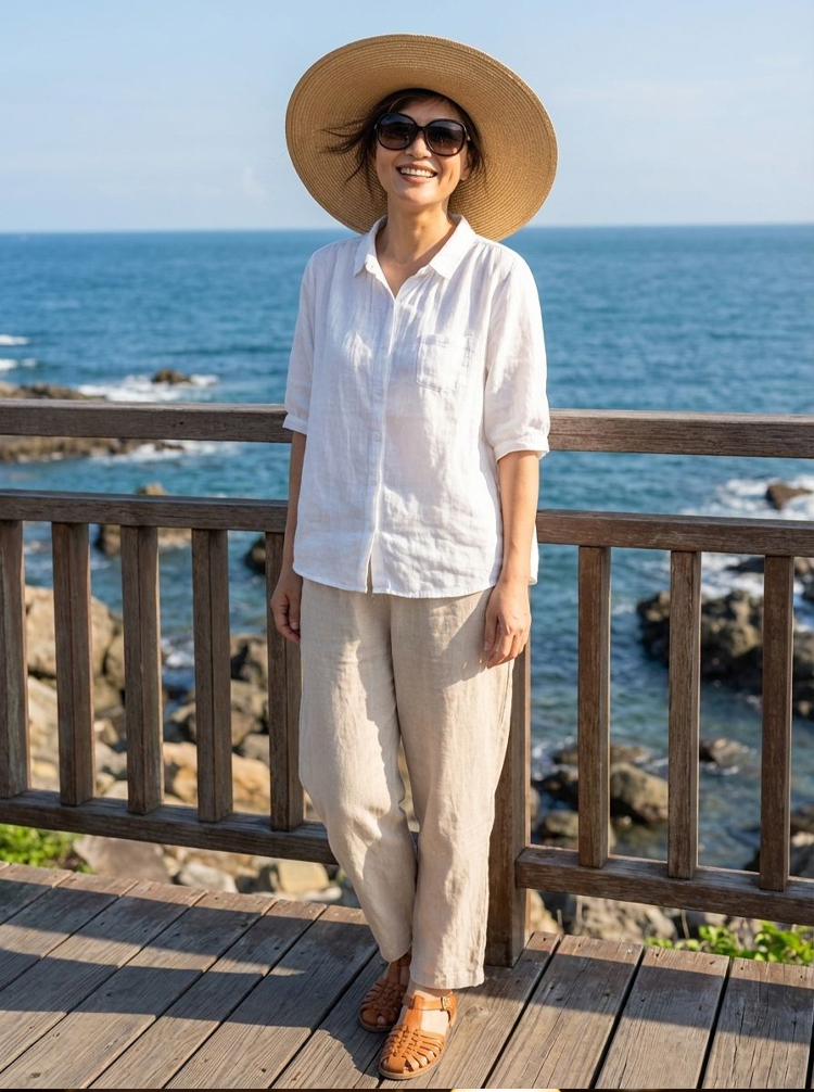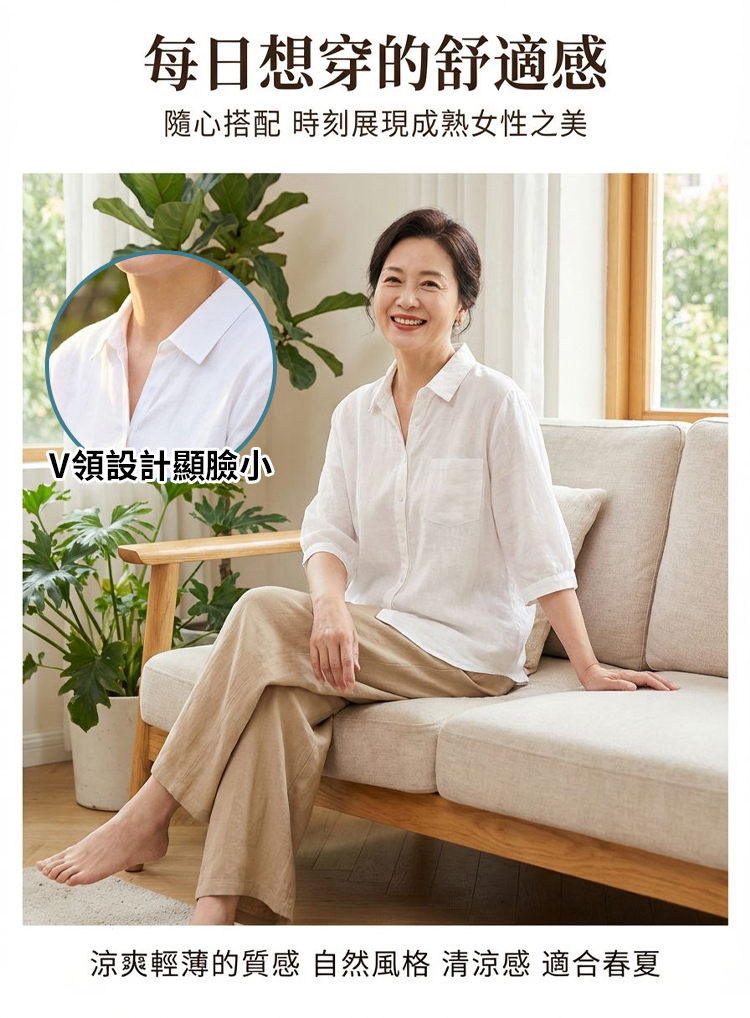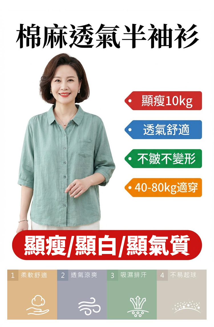 棉麻透氣半袖衫